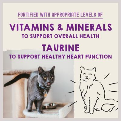 - No contiene granos, gluten, carragenina ni rellenos innecesarios, por lo que es fácil de digerir para felinos de todas las etapas de la vida.