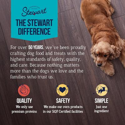 Additional Information: To be fed as a treat in addition to a complete and balanced diet. This product is for intermittent or supplemental feeding only. Always provide plenty of fresh water. Supervision while feeding is recommended. Store in a cool, dry place. Do not refrigerate. Please note that all Stewart Dog Treats are packaged by weight and this tub may or may not be filled to the top. Individual treat sizes and quantity may vary. This animal food is not intended for human consumption.