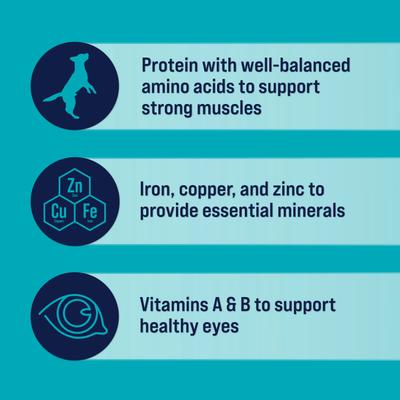 - Rich in iron, copper, and zinc, the topper provides essential minerals for your furbaby’s health as well as well-balanced amino acids to support strong muscles.