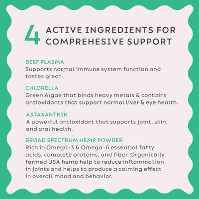 - Combines 5 powerhouse ingredients to support 8 essential areas of your pet’s health.