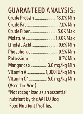Lamb Meal, Sweet Potatoes, Peas, Potatoes, Tapioca Starch, Potato Starch, Poultry Fat (Preserved with Mixed Tocopherols), Ground Flaxseed, Natural Flavor, Gelatin, Rosemary Extract.