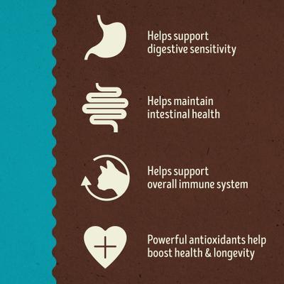 - Real fruits and vegetables including peas, chickpeas, berries and more deliver 100% complete nutrition with all the vitamins and antioxidants he needs to thrive.