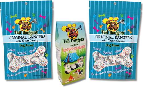 Indulge your furry friend with the irresistible Tail Bangers Camping Gift Pack Peanut Butter & Honey Crunchy Dog Treats. Crafted with care and baked to paw-fection, these treats are super delicious and nutritious, too. They’re made with wholesome ingredients and are free from artificial preservatives. Plus, they’re slow-baked in small batches for a perfectly crunchy texture your pup will crave. You can feel good knowing that you’re giving your furbaby a treat that not only tastes great but also supports their overall health and well-being. Whether you're rewarding your pup for good behavior, training them with positive reinforcement, or simply indulging them with a tasty treat, these treats are the perfect choice! Made in the USA with love and care, these small bone-shaped treats are perfect for dogs of all life stages. Plus, these treats feature real peanut butter and honey, providing natural sources of protein and energy for your best friend.
