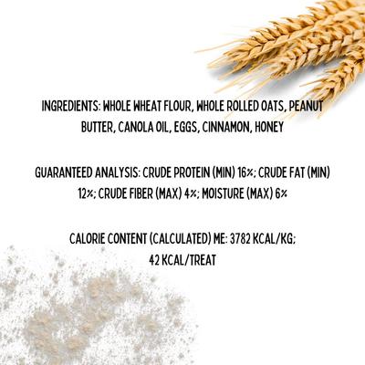 Whole Wheat Flour, Whole Rolled Oats, Peanut Butter, Canola Oil, Eggs, Cinnamon, Honey