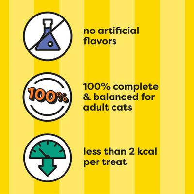 - You’ll like knowing you’re treating your phenomenal feline with a treat that’s 100% nutritionally complete and balanced for adult cat maintenance.