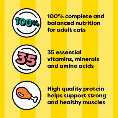 - Wet food helps to keep your furbaby hydrated and delivers complete and balanced nutrition for adult cats.
