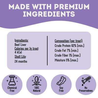 - Made with 100% natural raw beef liver for a nutrient-dense and tasty single-ingredient treat.