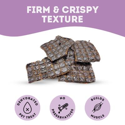 - Slowly Dehydrated: Each treat is slowly dehydrated to retain maximum nutrients, making them a tasty snack for your furry friend.