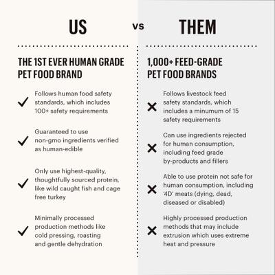 - Esta receta está hecha con ingredientes de grado humano y producida en una instalación de alimentos para humanos, lo que ofrece Nutrición de alta calidad, 100 % apta para consumo humano, para tu peludo amigo.