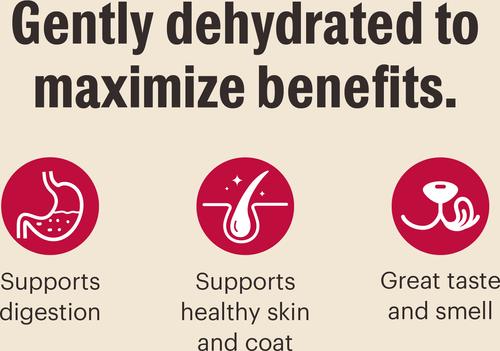 - This dog food rehydrates to 4 times its weight—just add warm water, then serve it as a whole meal, food topper, or special snack.