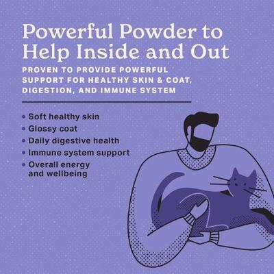 - Superfood supplement helps support skin, coat, digestive and immune health.