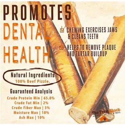 Las golosinas para perros Treat Shack Premium Standard Bully Sticks de 15 cm ofrecen una experiencia masticable deliciosa y duradera para tu mascota. Cada palito Bully Stick se selecciona cuidadosamente y se elabora artesanalmente. Estas golosinas son altamente digeribles y no contienen aditivos artificiales, conservantes ni rellenos. Su textura y forma naturales promueven la salud dental de tu cachorro, ayudando a reducir la acumulación de placa y sarro, contribuyendo a un aliento a piel y a la salud de sus encías. Son perfectos para todas las razas y tamaños, y ofrecen horas de entretenimiento y estimulación mental para satisfacer los instintos de masticación de tu peludo.