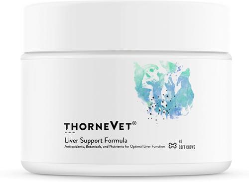 ThorneVET Liver Support Formula Chew Supplement for Dogs is the ultimate solution for pet parents looking to protect their furry friends from environmental toxins. This formula provides comprehensive support for liver function with a synergistic blend of botanical ingredients like milk thistle, curcumin, and dandelion root, along with powerful antioxidants like N-acetylcysteine and glutathione plus essential vitamins like methylcobalamin and L-5 methyltetrahydrafolate. These ingredients work together to support the detoxification pathways of the liver, enhance its synthetic function, and protect liver cells from further damage. ThorneVET uses tissue-ready forms of nutrients, making them easier to absorb for pets with compromised liver and digestive function. Plus, all this goodness comes in a chew that’s easy to administer.