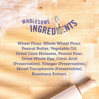 Wheat Flour, Canola Oil, Peanut Butter, Peanut Flour, Dried Cane Molasses, Dried Whole Egg, Citric Acid (Preservative), Mixed Tocopherols (Preservative), Rosemary Extract (Preservative).