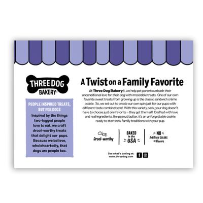 Treat your furbaby to a variety of flavors with Three Dog Bakery Lick’n Crunch Vanilla, Carob & Peanut Butter Dog Treats. Inspired by the sandwich cookies you love, these slowly baked delights come in mouthwatering vanilla, carob, and peanut butter flavors that’ll have your pup begging for more. With a satisfying crunch and irresistible taste, these treats are sure to become your best friend’s new favorite snack. Reward your loyal companion with these drool-worthy cookies today.