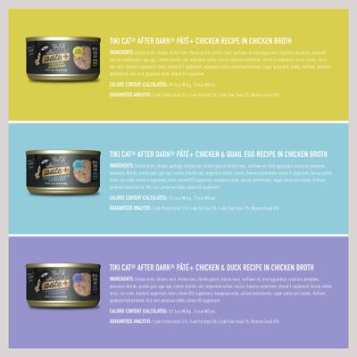 The Tiki Cat Chicken Pate Grain-Free Wet Cat Food is purr-fect for your pate-loving paw-tner. Treat your furbaby to five tasty recipes that feature high protein from real animal sources, high moisture to help keep kitty hydrated and paw-some variety, too. Your furbaby will feast on chicken and tuna and chicken and duck or quail egg recipes. Plus, there are plenty of morsels of yummy, nutrient-dense organ meats. With this variety pack, you can treat your best friend to a different pate at every meal.