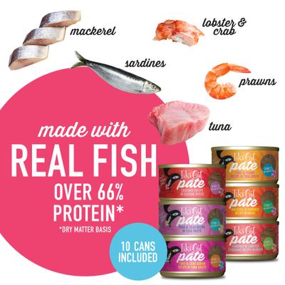 Let your pal pick out her own supper with the Tiki Cat Pate Variety Pack Wet Cat Food. These pate-style, wet cat foods feature real, high-quality proteins. The complete and balanced recipes are crafted with soft textures that are paw-fect for your sensitive sidekick. These high-protein cat foods are created using 100% non-GMO ingredients. They are developed to help provide supplemental hydration, and do not contain any fruits or vegetables for the benefit of your furry buddy.