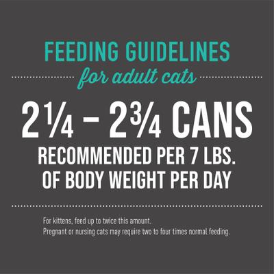 Feed your Adult Tiki Cat 2-3 can per 7 lbs of body weight per day. Feed up to twice the amount for kittens. Pregnant or nursing cats may require 2 - 4 times the amount. Feed at room temperature and refrigerate unused portion.