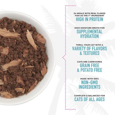 - High-protein meals feature real flaked fish as the first ingredients and are complete and balanced for cats of all ages.
