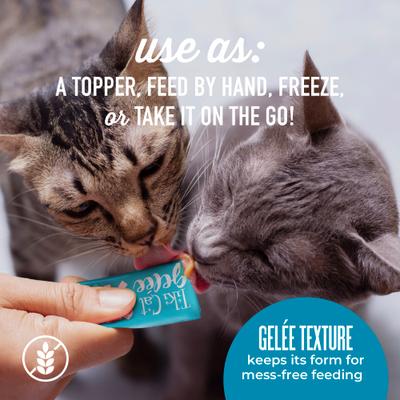 Para un extra de sabor y humedad, presione todo el tubo sobre la comida de su gato. O dáselo solo como premio especial. Los premios no deben representar más del 10 % de la dieta diaria de tu gato. Ajusta la cantidad de alimento según sea necesario para mantener el peso adecuado.