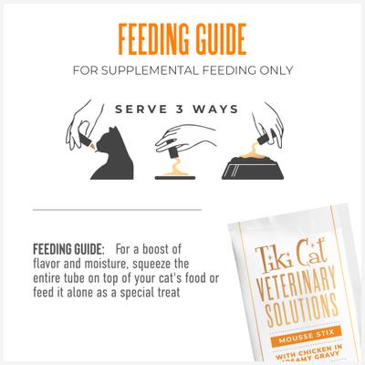Make your furry friend’s vet visits a breeze with Tiki Cat Veterinary Solutions Mousse Stix Chicken Lickable Cat Treats. These highly palatable and smooth lickable treats are perfectly portioned to keep your feline friend occupied and stress-free during exams. Not only that, but they also help stimulate appetite in kitties who may not have much of an appetite. Made with recognizable ingredients like chicken and chicken broth, these treats are not only tasty but also easy to eat. Tiki Cat Veterinary Solutions offers specialized diets for common medical conditions, meeting the nutritional needs of your obligate carnivore. With no prescription required, these mousse stix are the perfect solution for any four-legged family member needing a stress-free exam.