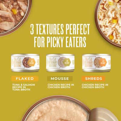 - Explore the food options available with Tiki’s chicken or fish-based proteins and three textures for high palatability.