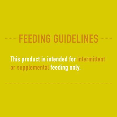Tiki Dog Aloha Petites Flavor Boosters are intended for intermittent or supplementary feeding only. For a boost of flavor and moisture, squeeze an entire pouch of Tiki Dog Aloha Petites Flavor Booster on top of your dog's complete and balanced food at each meal. Refrigerate unused portion and serve within 48 hours.