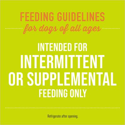 Tiki Dog Tummy Topper is intended for supplemental or intermittent feeding only. Refrigerate after opening.