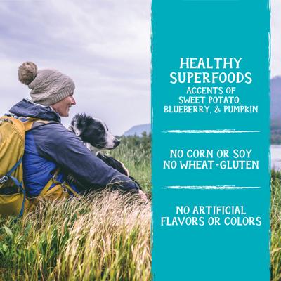 - Elaborado con alimentos saludables como boniatos, guisantes, aceite de linaza, garbanzos y arándanos.