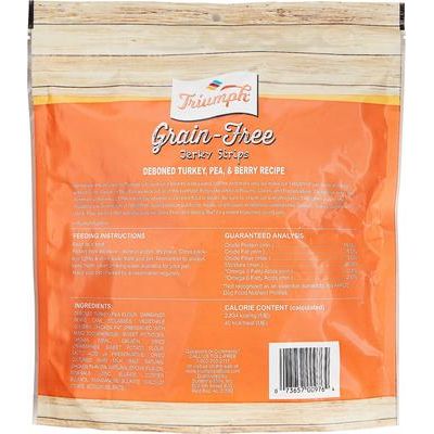 Administrar como premio. Como guía, administrar hasta 6 tiras de cecina Triumph Grain Free por cada 11 kg de peso corporal de su mascota al día.