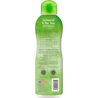 - Este champú para perros que alivia la picazón ayuda a calmar la piel seca e irritada y proporciona un reconfortante aroma a avena y árbol de té.
