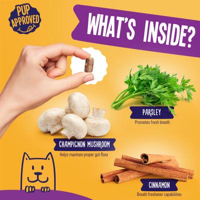 - Promotes oral health and fresh breath in dogs of all breeds and sizes.