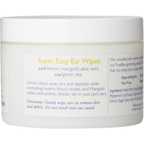 - Incluye Toallitas humedecidas. Ayudan a eliminar la suciedad, la cera y los residuos de las orejas de los perros, previniendo infecciones. Contienen limón, que favorece una buena circulación sanguínea. Con infusión de caléndula, que calma y suaviza. Mantén las orejas de tu perro limpias y sanas con las toallitas para orejas TrueBlue Pet Products Super Easy Dog Ear Wipes. Fabricadas en EE. UU., estas toallitas humedecidas ayudan a eliminar la suciedad, la cera y los residuos que pueden provocar infecciones de oído dolorosas y con mal olor en los perros. Son fáciles de usar y contienen una variedad de ingredientes limpiadores que mantendrán las orejas de tu cachorro limpias. El limón infundido limpia y promueve un flujo sanguíneo saludable mientras que las esencias de caléndula suavizan y calman la piel dentro de las orejas de tu cachorro. ¡Úselo simplemente según las instrucciones para mantener a su cachorro feliz y saludable!