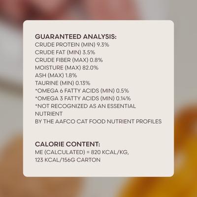 Chicken, Chicken Broth, Pumpkin Puree, Rabbit, Carrots, Ground Golden Flaxseed, Natural Flavor, Tricalcium Phosphate, Agar-Agar, Salmon Oil, Dandelion Greens, Potassium Chloride, Vitamins [Vitamin E Supplement, Vitamin A Supplement, Vitamin B3 (Niacinamide), Vitamin B5 (Calcium Pantothenate), Vitamin B1 (Thiamine Mononitrate), Vitamin B2 (Riboflavin), Vitamin B6 (Pyridoxine Hydrochloride) Vitamin B9 (Folic Acid), Vitamin B7 (Biotin), Vitamin B12 Supplement, Vitamin D3 Supplement], Magnesium Amino Acid Chelate, Choline Chloride, Taurine, Minerals [Copper Amino Acid Chelate, Iron Amino Acid Chelate, Manganese Amino Acid Chelate, Potassium Iodide, Zinc Amino Acid Chelate, Sodium Selenite], Sea Salt.