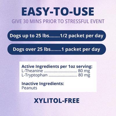 - Created with just 3 pure ingredients—2 amino acids to soothe your buddy and peanut butter for yumminess.