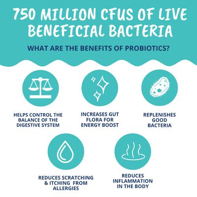 - Formulated with live probiotics to help your sidekick have a healthy gut.