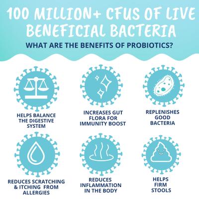 - Probiotic Soft Chews for Dogs aid in digestion and help your pup maintain a healthy appetite—all while supporting their everyday health and well-being.