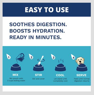 - This bland diet is specially formulated to help soothe your dog’s digestive tract during times of upset, such as vomiting or diarrhea.
