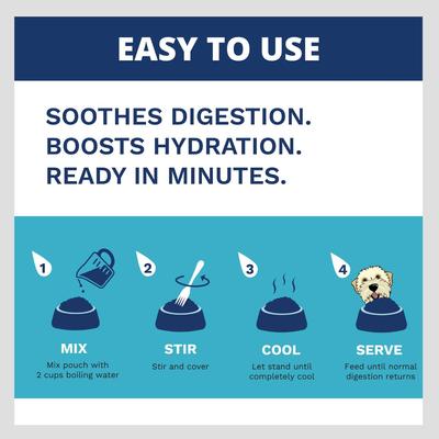 - Esta dieta blanda está especialmente formulada para ayudar a aliviar el tracto digestivo de su perro durante momentos de malestar, como vómitos o diarrea.