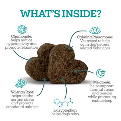 Vetality Calming Well Bites Dog Supplement offers an intelligent pheromone solution in an easy to use daily chew. The patented blend on the outside of the calming chew provides quick-acting results immediately after your canine companion sniffs the chew. The proprietary blend on the inside starts to work after your dog ingests the Calming Well Bite, providing long-lasting calming benefits.