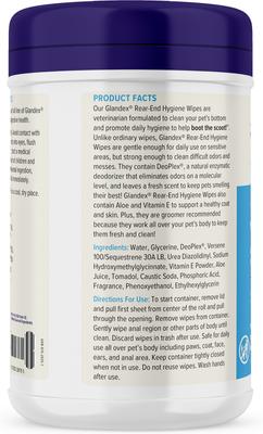 Toallitas higiénicas desodorantes y limpiadoras de glándulas anales Glandex Boot the Scoot para perros y gatos, 75 unidades