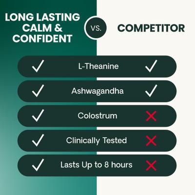 Active Ingredients: Thiamine (Vitamin B1) 134 Mg, Shoden [Ashwagandha (Withania Somnifera) Extract] 40 Mg, Colostrum Calming Complex Biopeptide Blend 22 Mg, L-Theanine (Suntheanine Brand) 21 Mg.