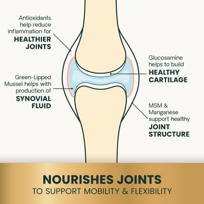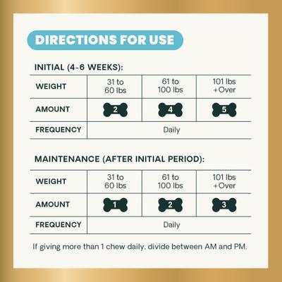 - Este suplemento contiene mejillón de labios verdes, glucosamina, condroitina, MSM y antioxidantes para un apoyo articular óptimo para su mascota.