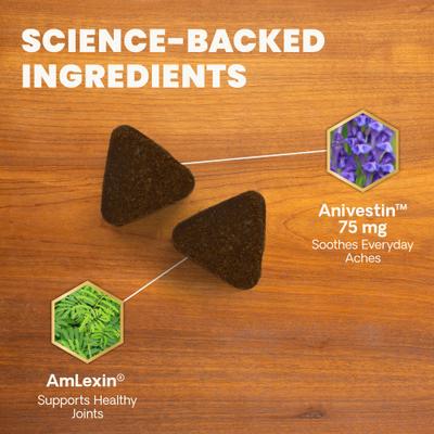 Give your furry friend the ultimate joint support with VetriScience Max Veterinary Strength Comfort & Ease Amilextin Chicken Flavored Soft Chew Joint Supplement for Dogs. Designed by veterinarians, this advanced mobility supplement is formulated to protect joint cartilage, support joint health, reduce pain and inflammation, and soothe aches and pains. With clinically proven ingredients like AmLexin and Anivestin, these joint pain relief chews are a powerful solution for your pup’s joint health. Serve them alone or in combination with VetriScience Hip & Joint or Healthy Muscle & Strength (sold separately).