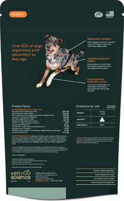 VetriScience Veterinary Strength Healthy Hip & Joint Chicken Flavored Supplement Chews for Large Dogs are the perfect daily joint support for your pet. (It’s a new name but the same great VetriFlex formula!) These vet-formulated chews are made with powerful anti-inflammatory ingredients like glucosamine, MSM, and green-lipped mussel to help keep your furry friend’s joints cushioned, lubricated, flexible, and comfortable. With the added benefits of curcumin, Boswellia, and hyaluronic acid, these chews help reduce inflammation and soothe everyday aches and pains. Plus, the delicious chicken flavor makes them easy to give as a treat!