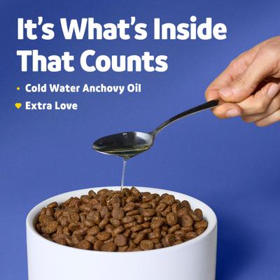 - Sourced from cold-water Peruvian anchovy oil, a source of omegas that’ll help keep their bodies in tip-top shape, so giving your dog their daily omegas won’t feel like swimming upstream. (See what we did there? You know, because of fish.)