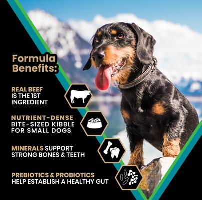 - Features a high protein-to-fat ratio to support the higher metabolism of small dogs.