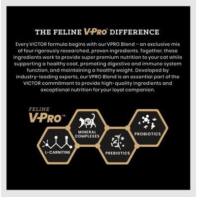 Ayuda a tu gatito a mantenerse en forma alimentándolo con VICTOR Mers Feline Dry Cat. ¡Comida! Estas deliciosas croquetas para gatos están diseñadas específicamente para ayudar a los gatos con actividad normal a mantener un peso saludable. Contienen ácidos grasos omega-3 y omega-6 para una piel sana y un pelaje brillante, L-carnitina para ayudar a convertir la grasa en energía y promover el desarrollo muscular magro, y vitamina E y selenio para fortalecer el sistema inmunitario. Esta receta también está repleta de ingredientes de primera calidad como harina de pollo, carne de res, cerdo y pescado sábalo, además de niveles saludables de fibra para favorecer la digestión de tu amigo felino. Así que, ¡sirve un tazón lleno y observa a tu mejor amiga ronronear de alegría después de cada bocado!