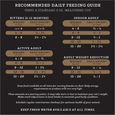 | Peso | Gatitos hasta 12 meses (taza) | Adultos (taza) | Reducción de peso (taza) |