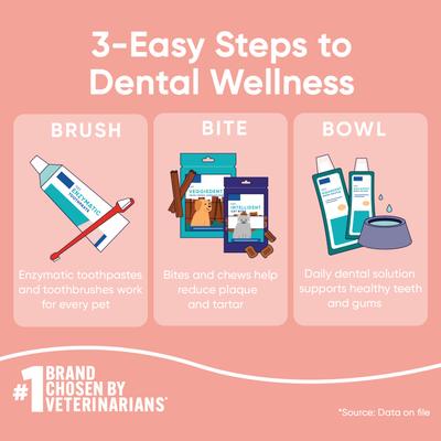 - Works 3 ways at once—cleans teeth, freshens doggy breath, and aids digestive health.